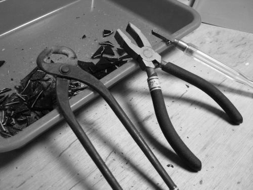 それでは経験が有る方の場合はどうでしょう。私の行う教室も含め多く有るステンドグラス教室で数年参加した経験者の場合などです。同様な場面を多く経験していますので解るのですが今まで学んできた技法は全てとは言いませんが基本からおさらいする事が多々あります。これはステンドグラス教室の教える内容の善し悪しではありません。文章に表現するのが難しいですが例えば一つの作品を作り始め完成まで進んで行く場合方向性は同じです。しかし各作業をどの位深く掘下げて学んで行くか。この辺が通常の教室で学ぶ内容とプロとして学ぶ場合では異なってきます。他にも異なる面は多くあります。出来るかどうか試してからと言う考えは理解できますが時間的にも費用的にも無駄が多くなると感じます。全く経験がない方へは様々な内容を吸収する速度は経験者むしろより速いです。もちろん通常のステンドグラス教室で行う内容より厳しい面も多く有ります。目的があり技術を学ぶ気持ちが強ければ道は開けてゆくと思います。