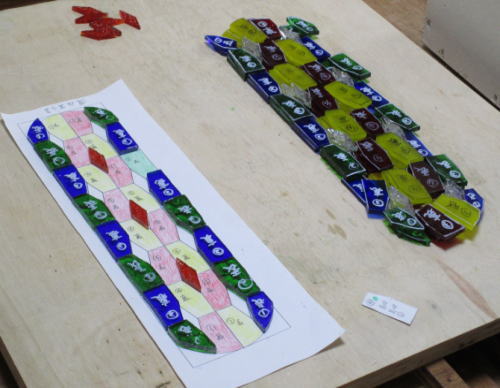 単調なデザインゆえごまかしがあまりきかず粗が見えやすいので丁寧な作業を心がけて制作して行きます。モザイク柄が好きな生徒さんでしたのでコツコツ制作に励んでくれましたね。